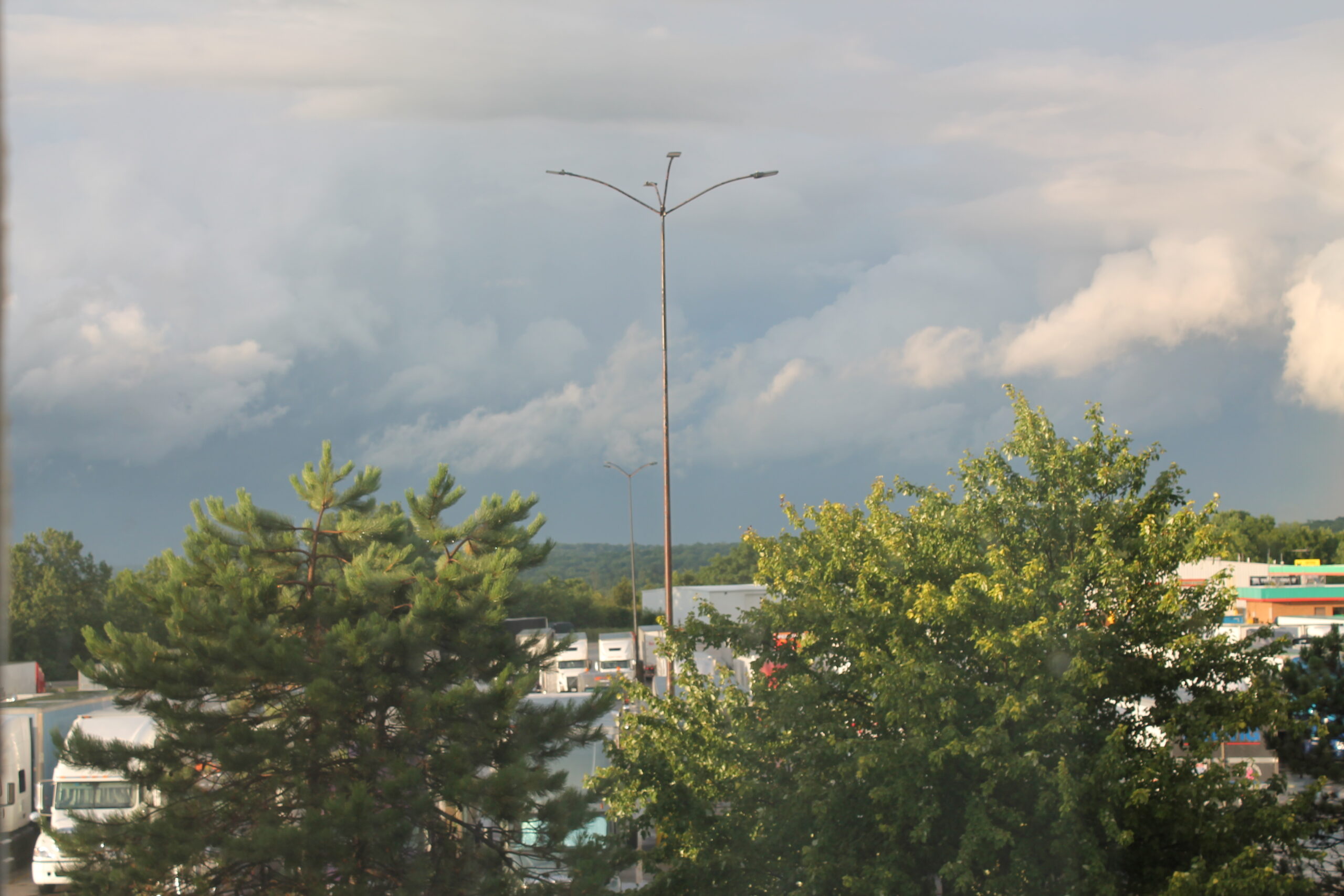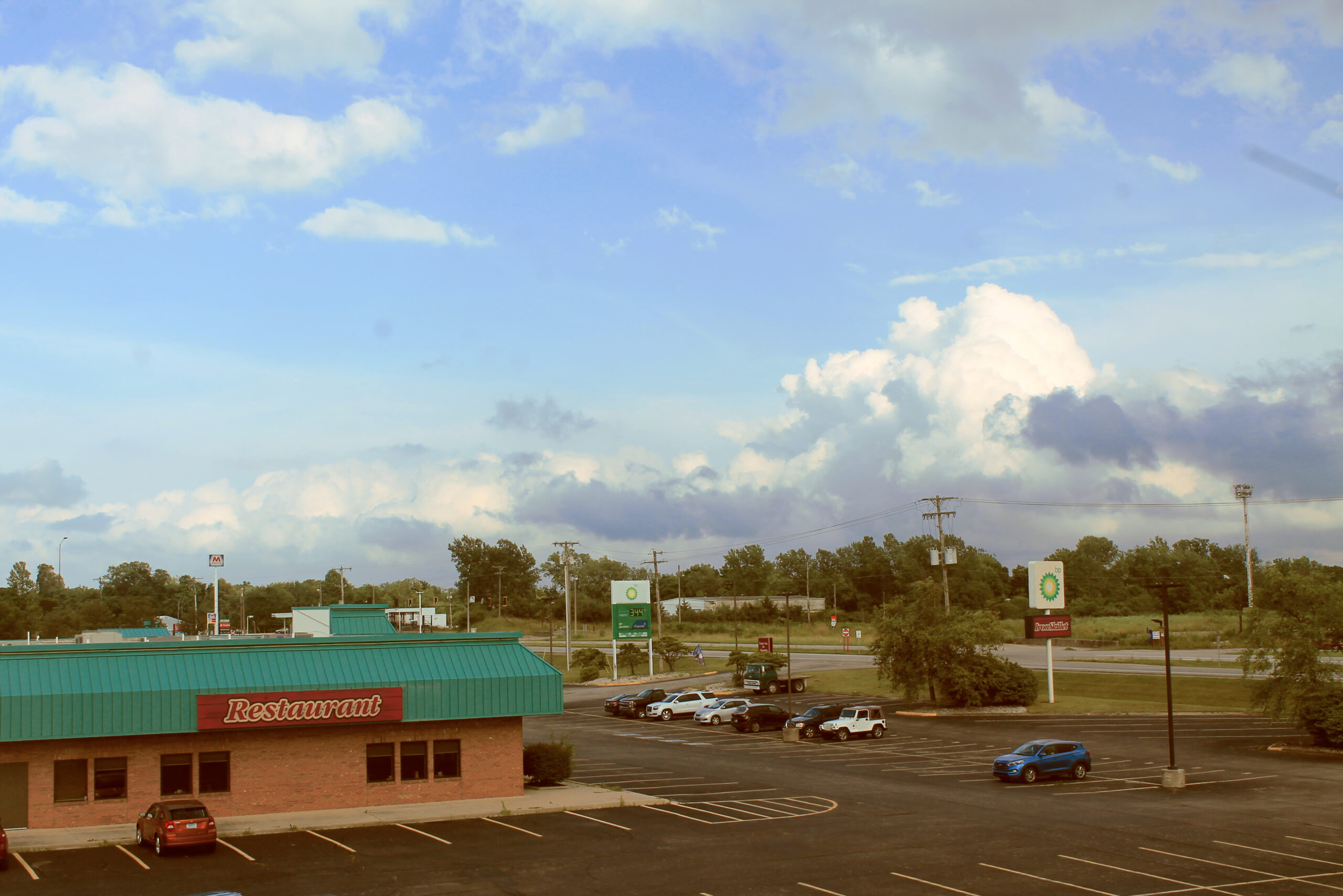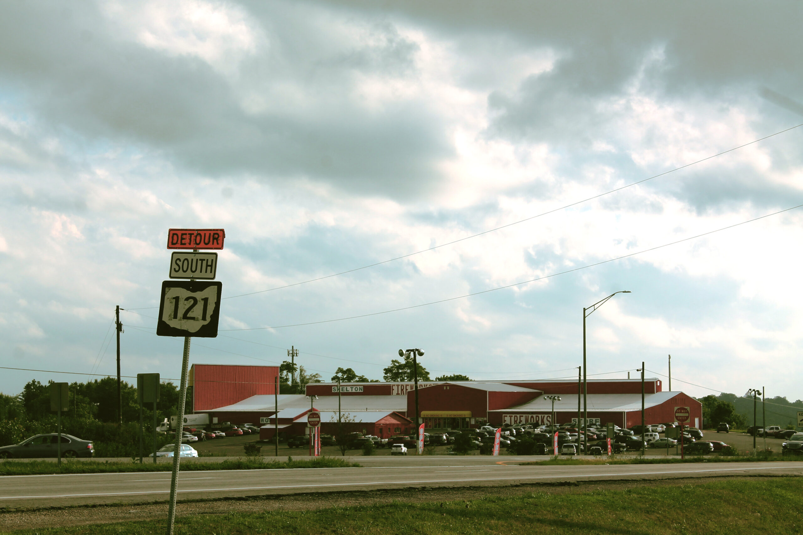Traveling to Kansas for a residency my first night on the road was spent at a hotel on the border between Indiana and Ohio. This night’s sunset occurred between parting storm clouds and created a moment of compellingly dramatic light. Road trips offer this gift of being where you never knew to be. I use my camera as a way to get intimate with these spaces. I make images to craft meaning and memory out of these impermanent spatial interactions.