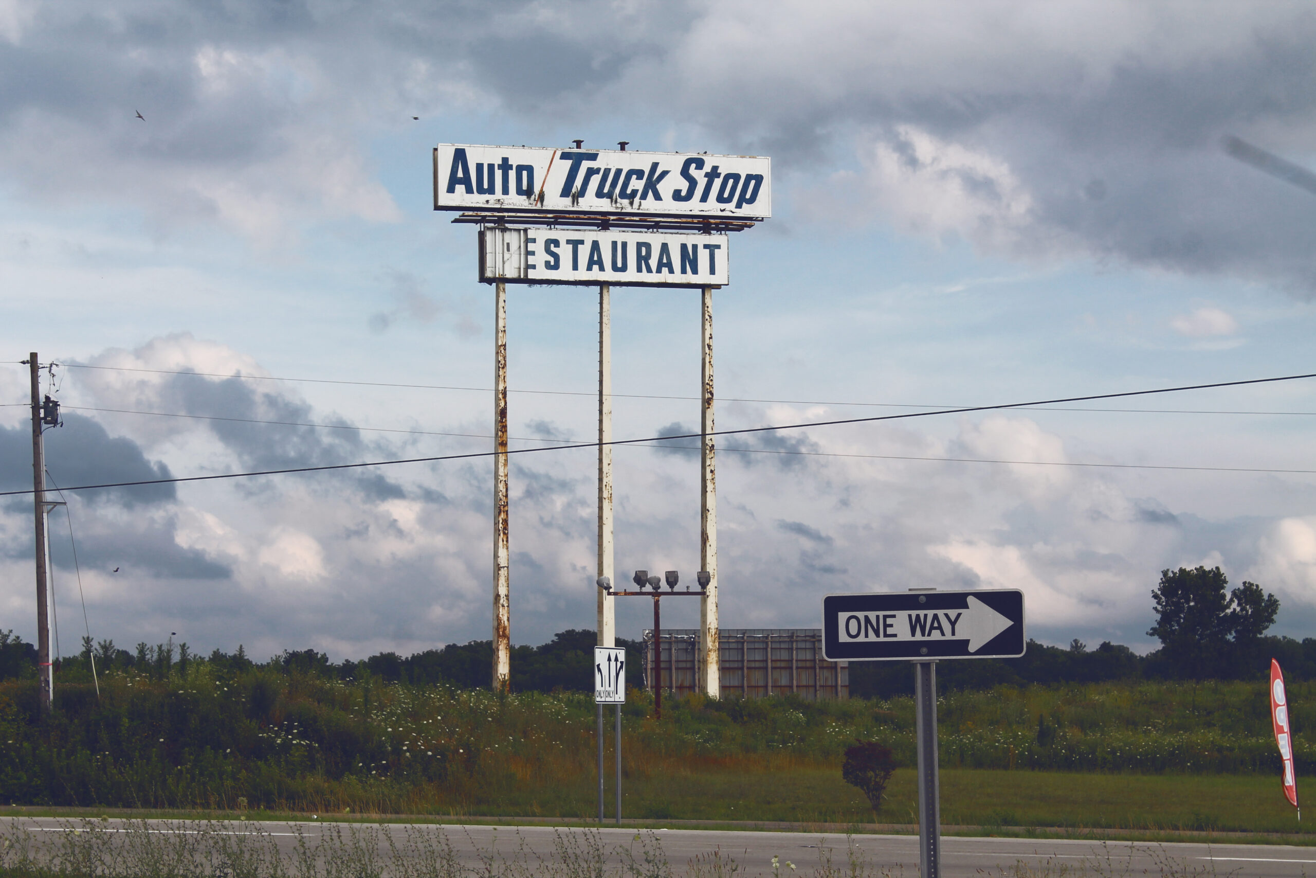 I love the interval between decay and relic, the aesthetic of hollowing out. The busted-out Audio/Truck Stop sign on the edge of a disincorporated town speaks to an intricate web of stories. To see it is to know it, and often struggles are expressed in words and emotions. The remnants of economies that once were gives physical metaphors to class divisions, marks the history of transit, and makes tangible the myth of prosperity under capitalism.